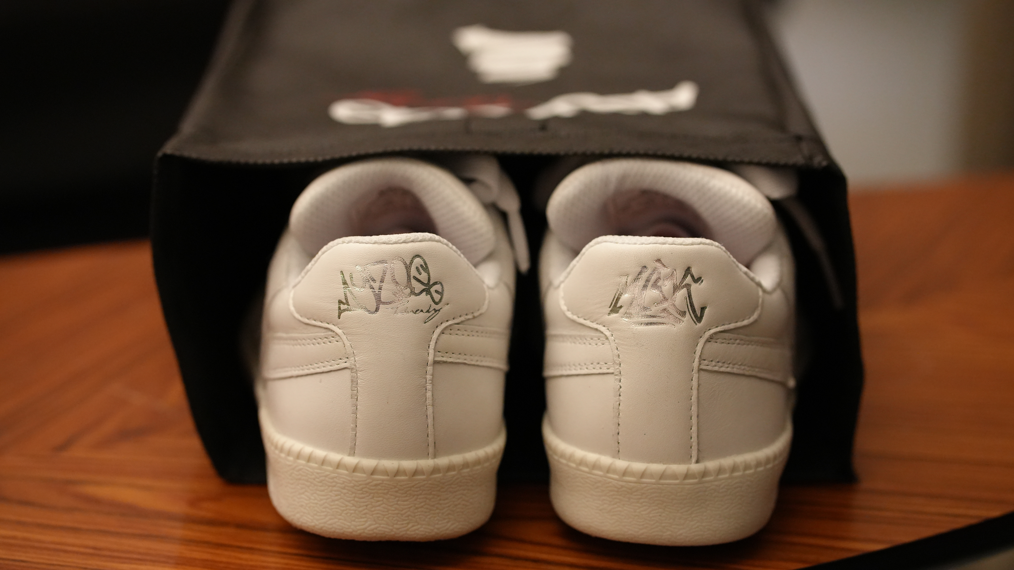 A graffiti logo for a shoe collaboration between Morrison Academy Kaohsiung and Dyzee Threadz