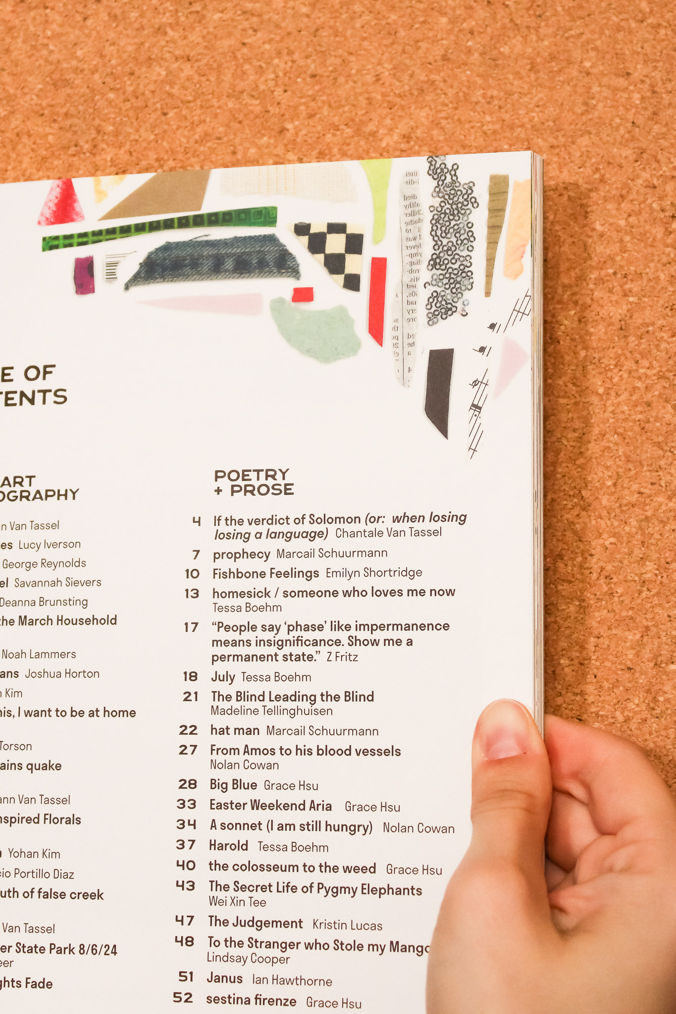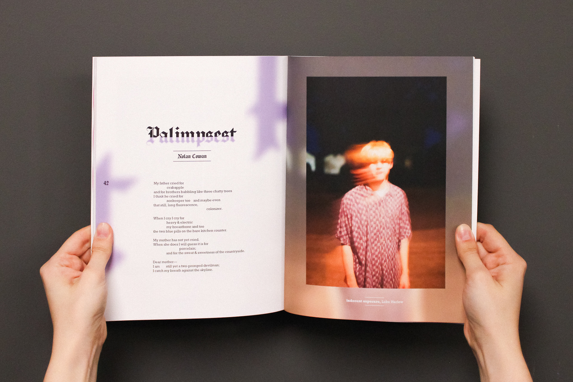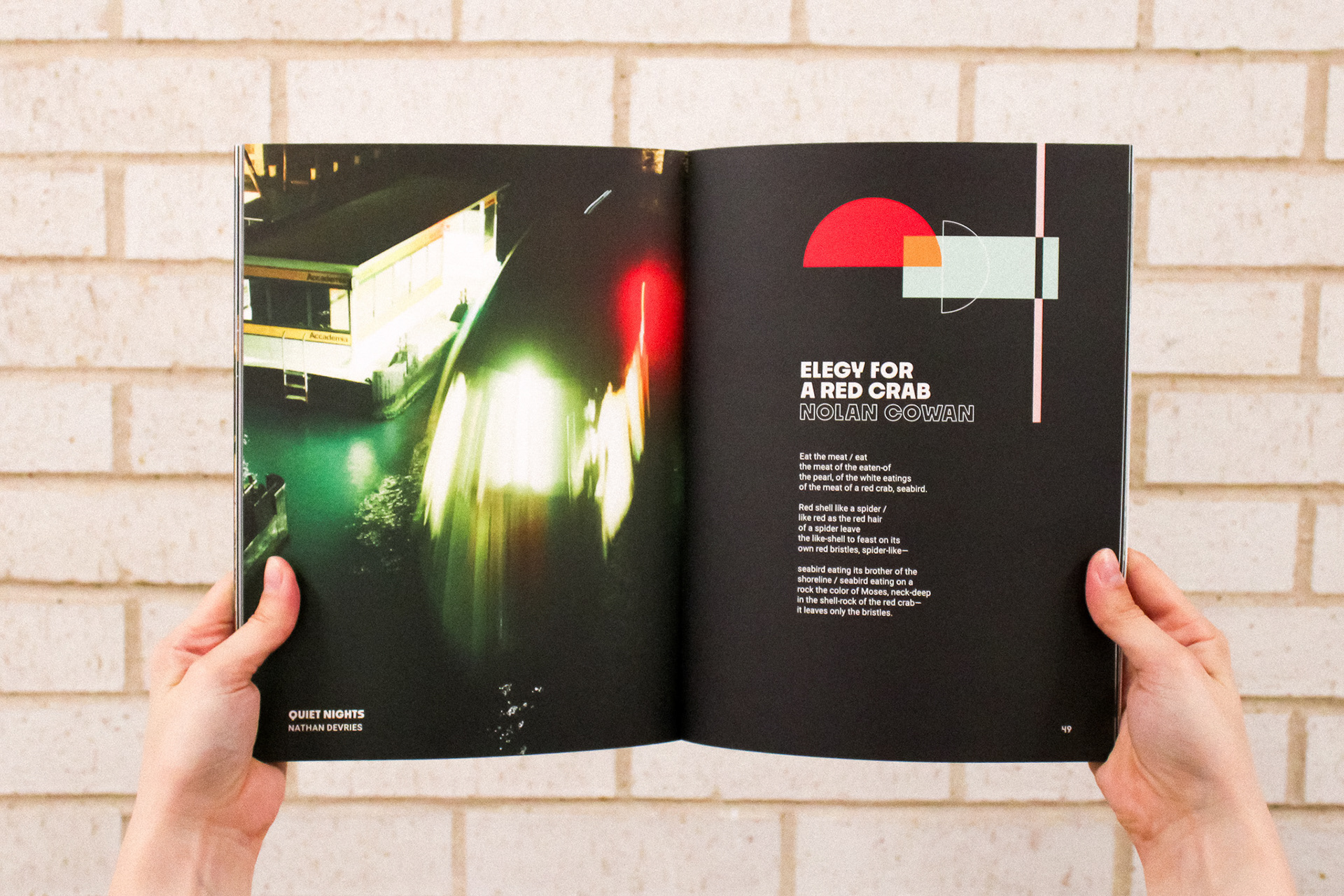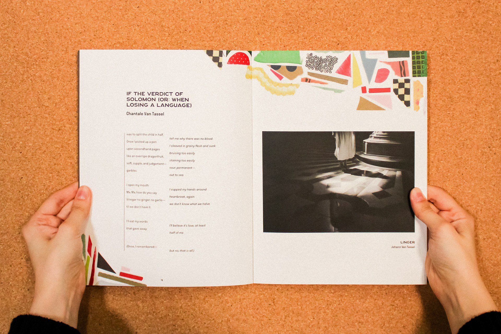Dialogue is Calvin University’s student-run creative journal. It publishes work in four different categories: prose, poetry, photography, and visual art. For each genre, blind student juries evaluate all submissions and select the finest pieces for publication. As a co-layout editor I have taken on specific responsibilities for Dialogue including making aesthetic decisions such as the color palette, typeface pairings, decorative elements, photography and artwork placement, and the cover design.