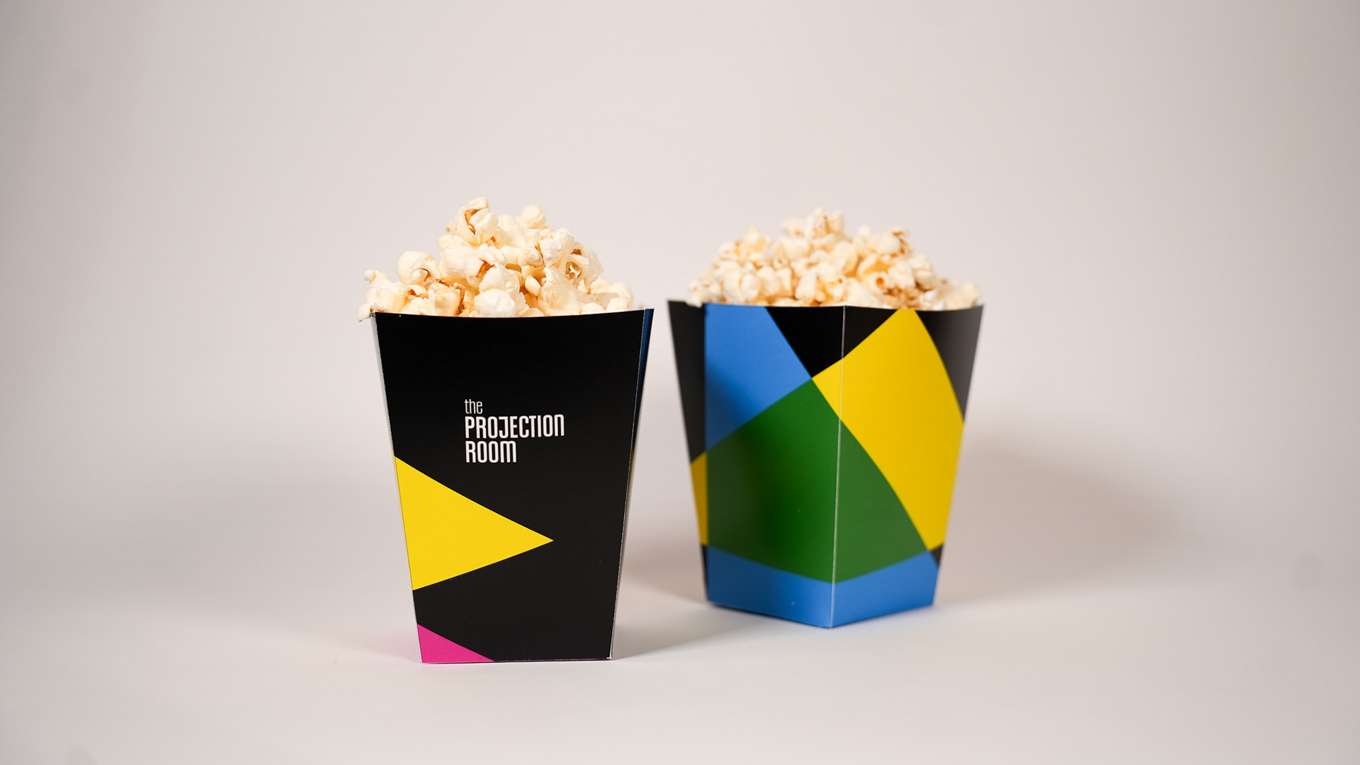 This project centered on creating a logo for The Projection Room, a movie theater geared toward university students and known for its late-night screenings and lively atmosphere. The final solution is a dynamic logo system that shifts and adapts based on its use. In addition to the logo, I designed environmental graphics and a small branded set featuring a popcorn bucket, 3D glasses, and a punch card.