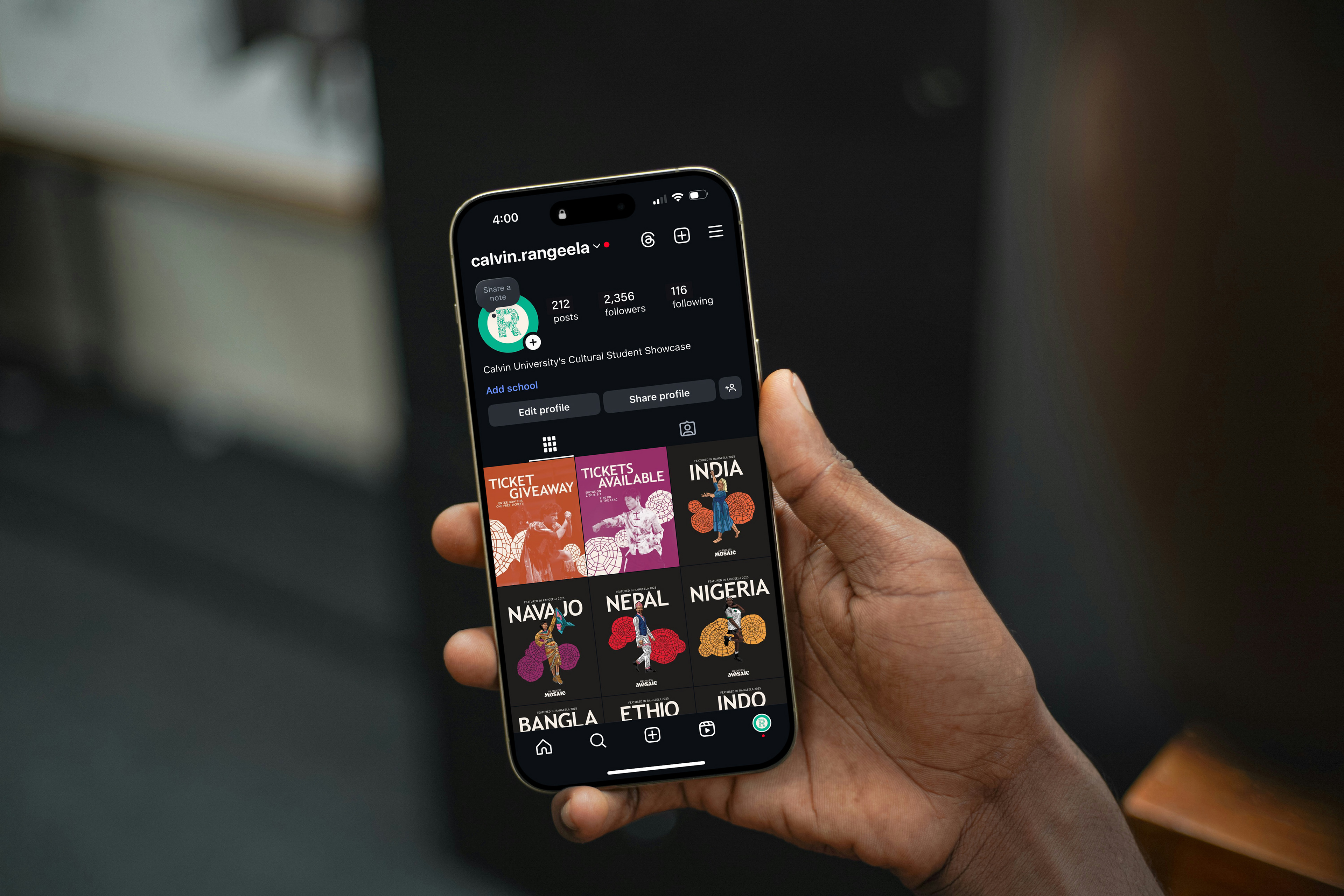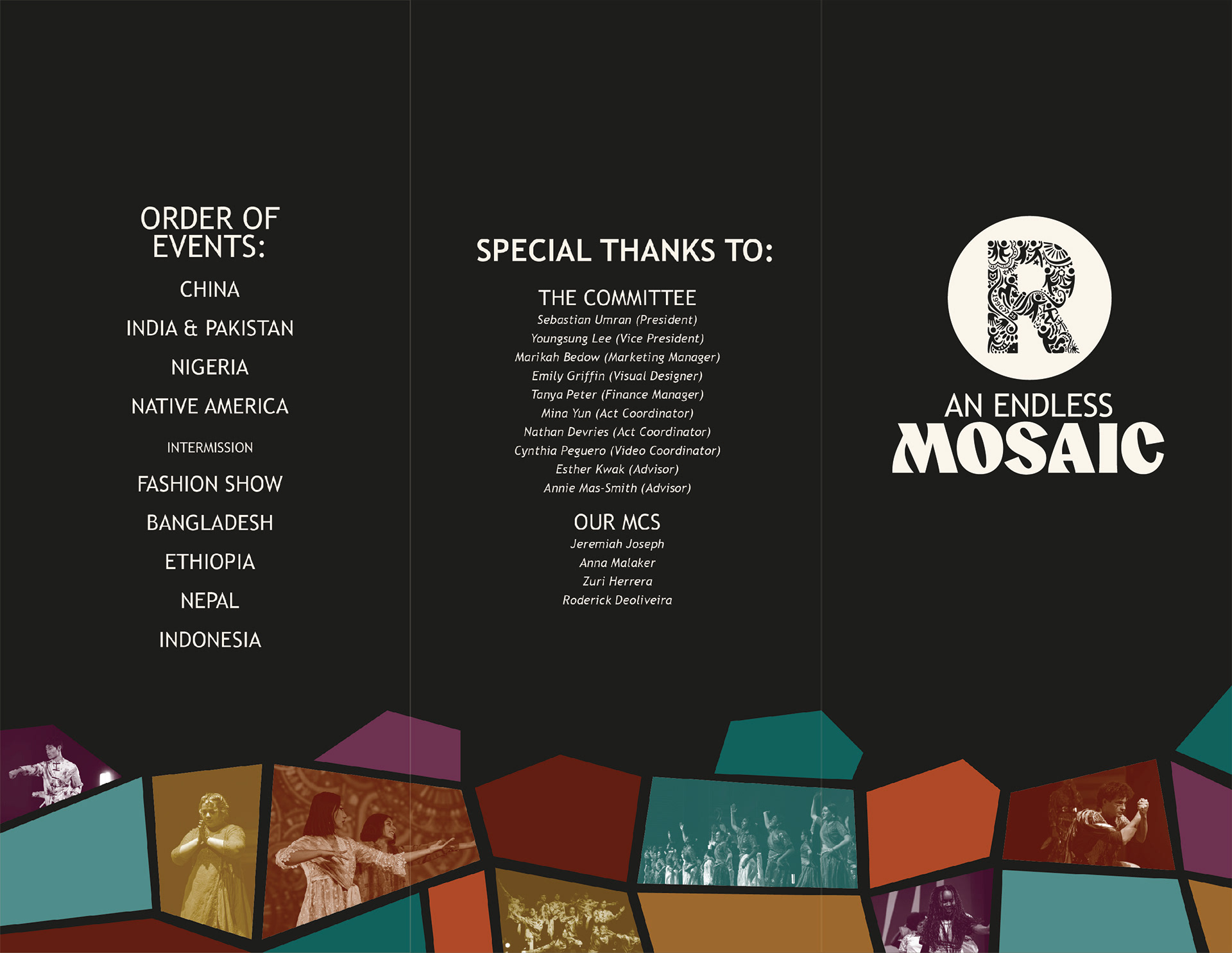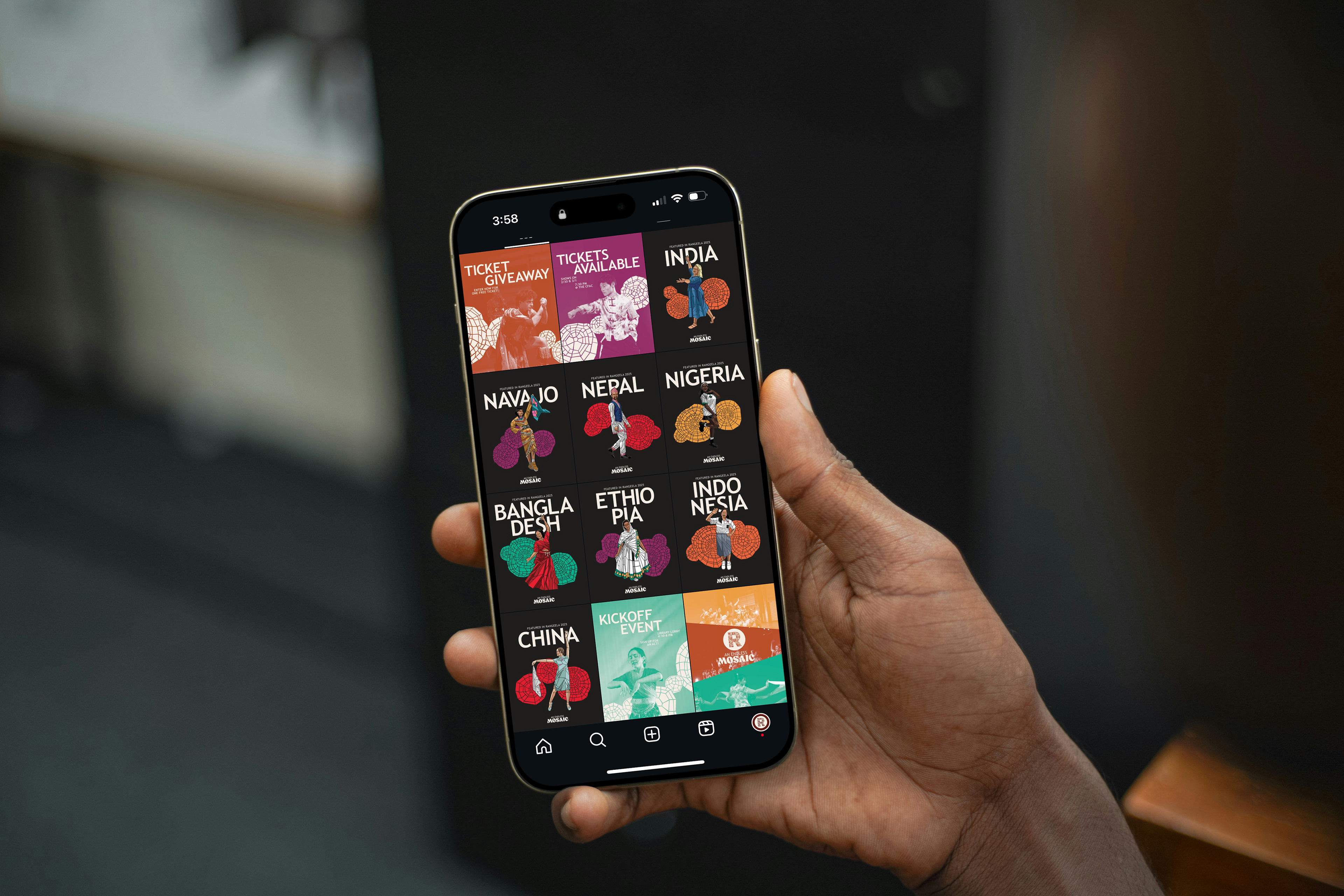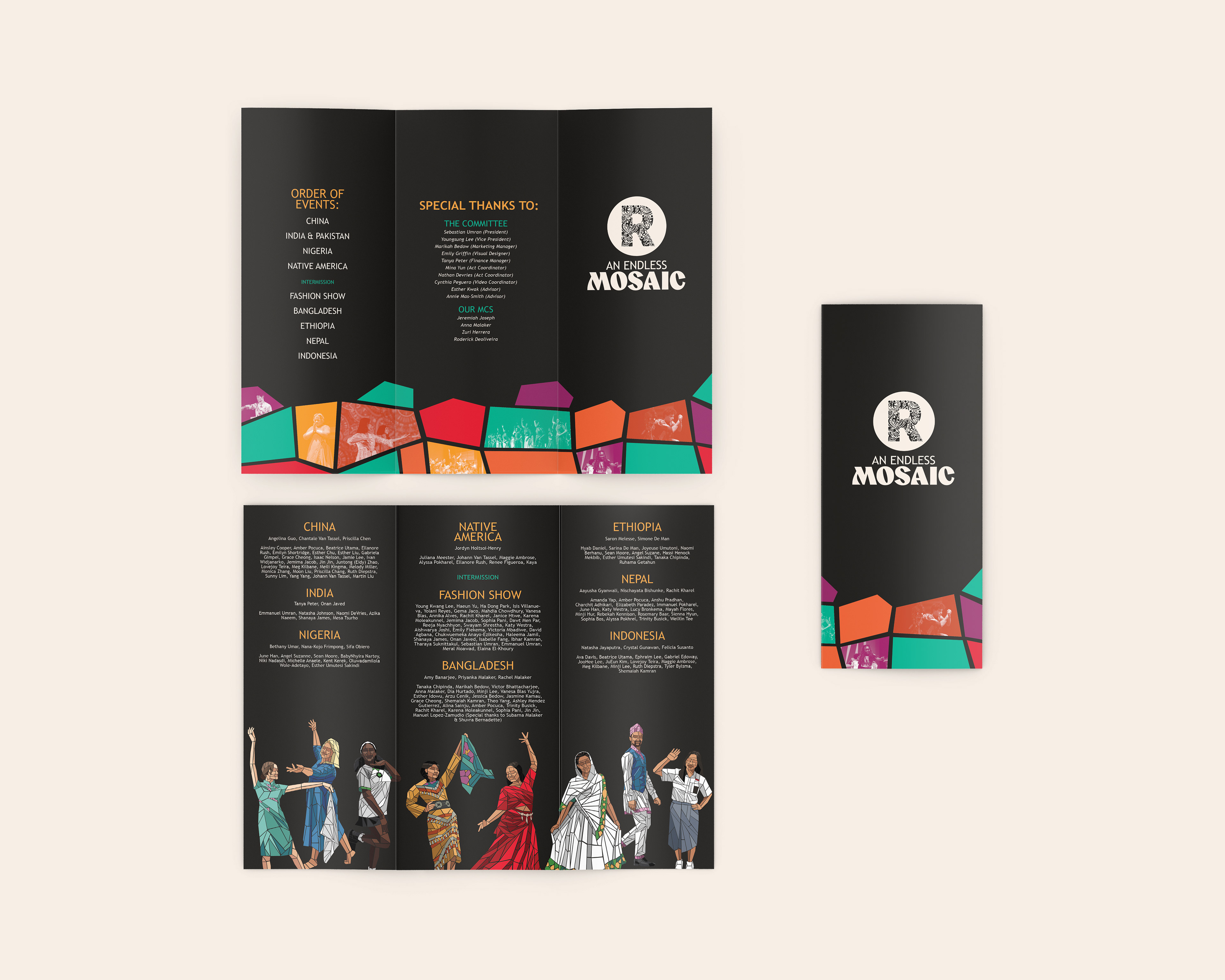 Rangeela, derived from the Hindi word for “colorful”, is a two-night student showcase celebrating cultures from around the world. This year’s theme, An Endless Mosaic, highlights the beauty and value of diversity. Building on Rangeela’s existing circular logo, I created a new word mark for use across social and print media. Over the course of six months, I designed graphics for the showcase spanning social media, print materials, and spatial interventions.